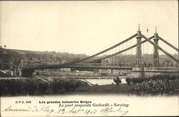 Ak Seraing Wallonien Lüttich, Le pont suspendu Cockerill-Seraing