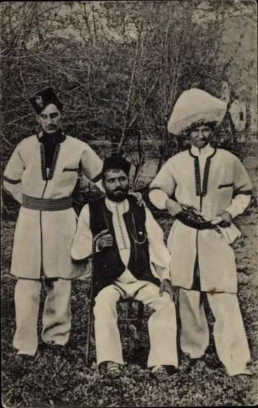 Ak Serbien, Drei Männer in Volkstrachten, Revolver