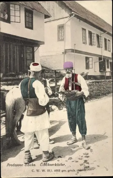 Ak Serbien, Männer in serbischen Trachten, Händler