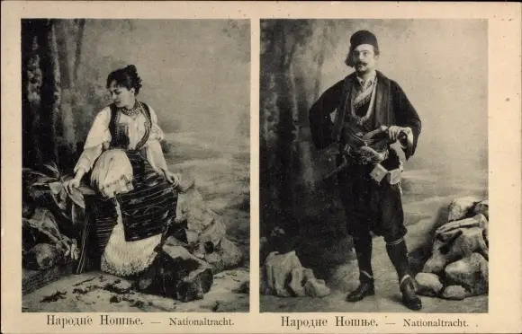 Ak Serbische Nationaltracht, Frau und Mann in serbischer Tracht
