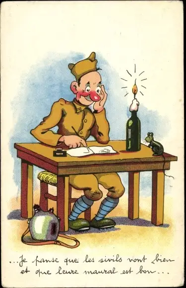 Ak Serie Comique Militaire, französischer Soldat schreibt einen Brief