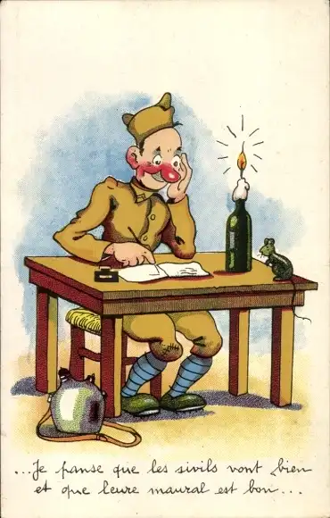 Ak Serie Comique Militaire, französischer Soldat schreibt einen Brief