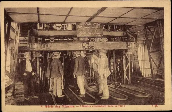 Ak Serie des Mineurs, Bergleute steigen in die Mine hinab