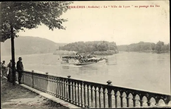 Ak Serrieres Ardèche, La Ville de Lyon au passage des Iles