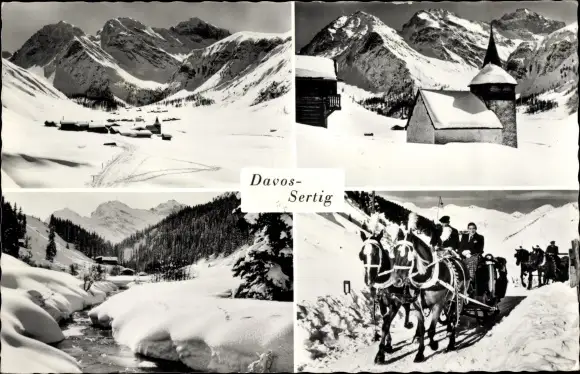 Ak Sertig Dörfli Kanton Graubünden, Davos, Kapelle, Winter