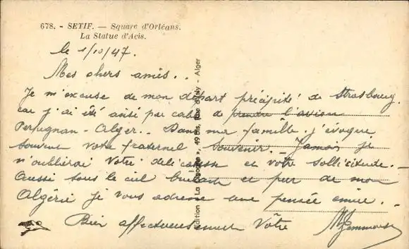 Ak Sétif Algerien, Square d'Orleans, Statue von Acis