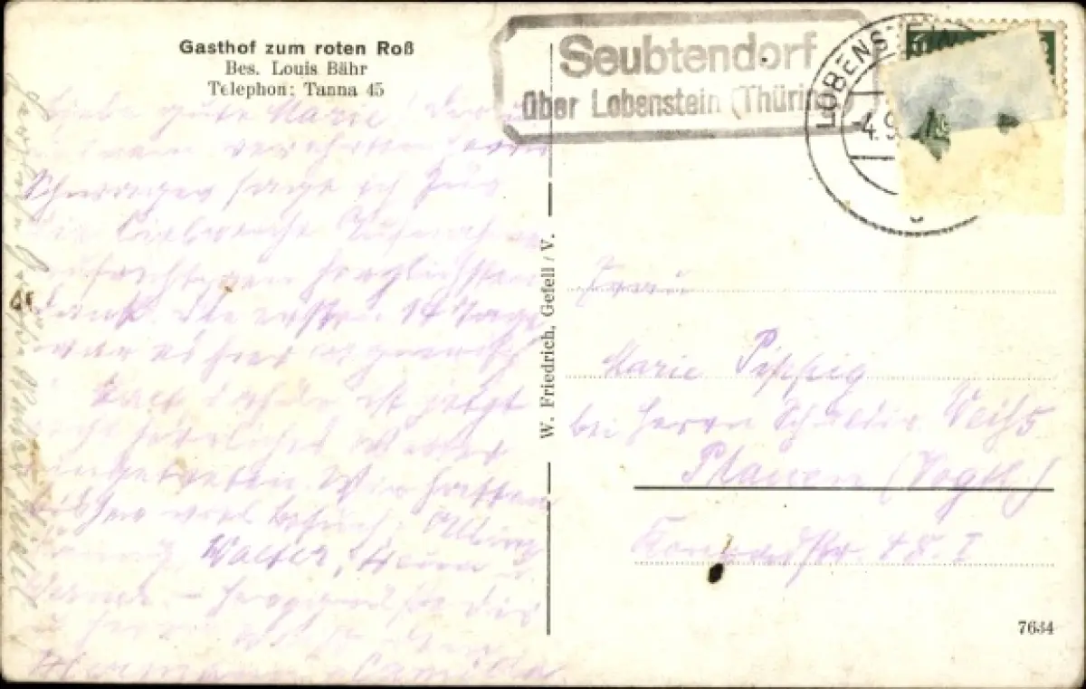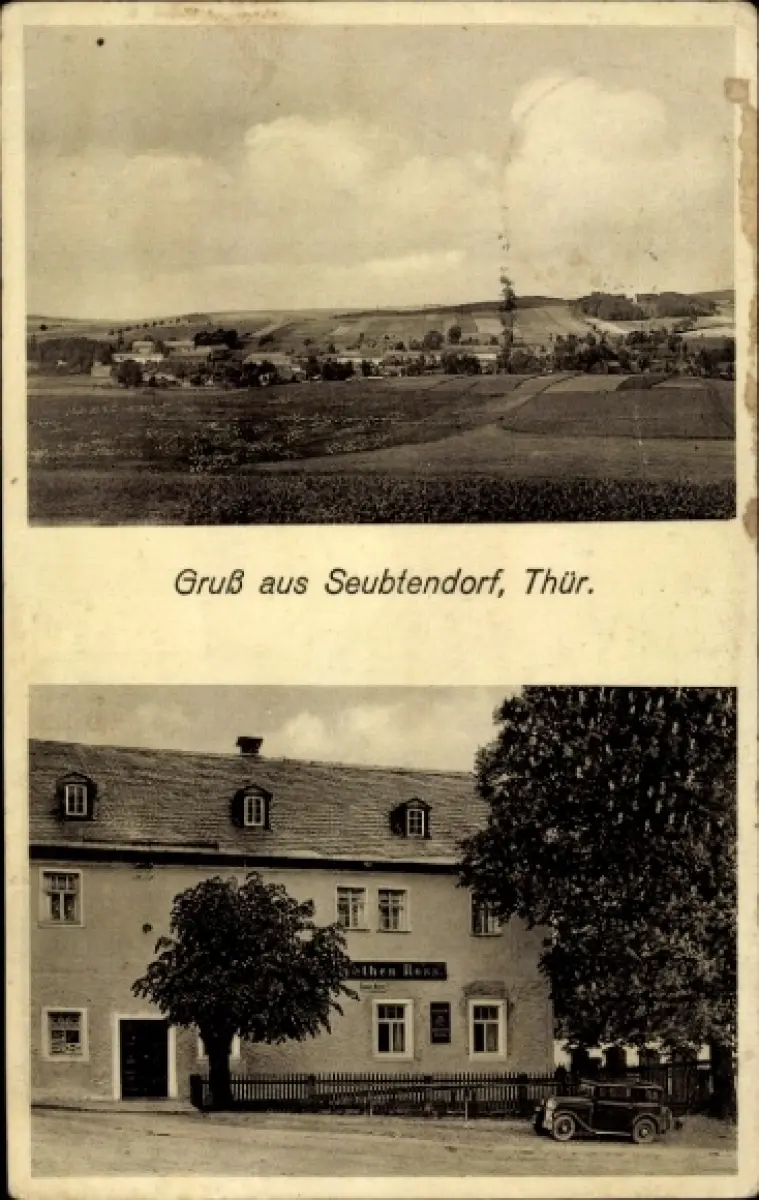 Ak Seubtendorf Tanna in Thüringen, Gesamtansicht, Gasthof zum roten Roß