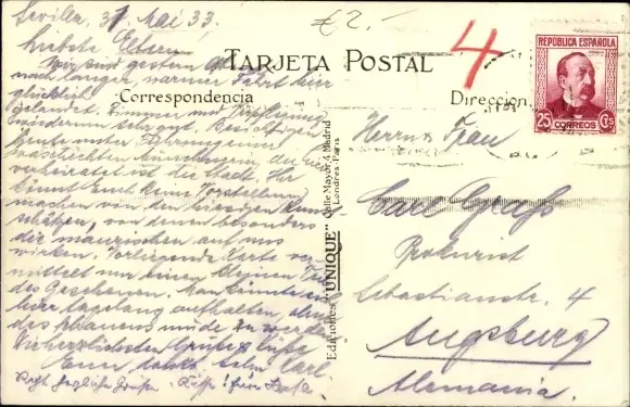 Zustand, siehe Scan, gelaufen, 1933 - ca 9 cm X 14 cm