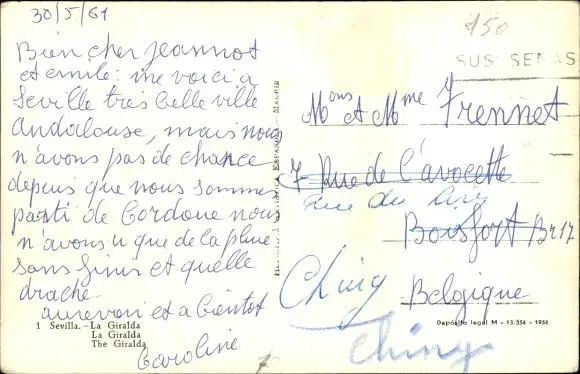 Zustand, siehe Scan, gelaufen, 1961 - ca 9 cm X 14 cm