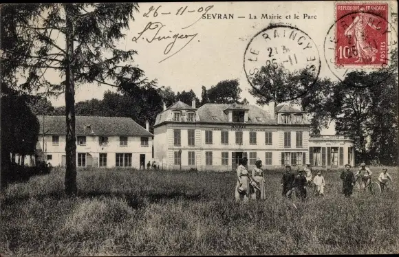 Ak Sevran Seine Saint Denis, La Mairie et le Parc