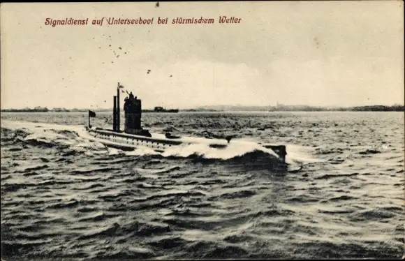 Ak Signaldienst auf Unterseeboot bei stürmischem Wetter