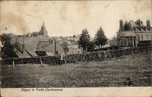 Ak Signy le Petit Ardennes, Schwarz-weiß Foto einer kleinen Ortschaft mit Kirche, Häusern und ...