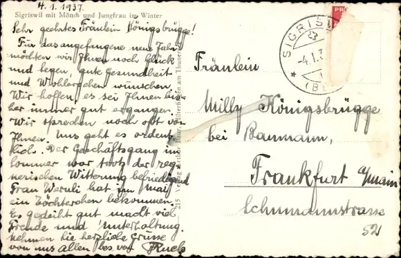 Ak Sigriswil Kanton Bern, Ort mit Mönch und Jungfrau im Winter