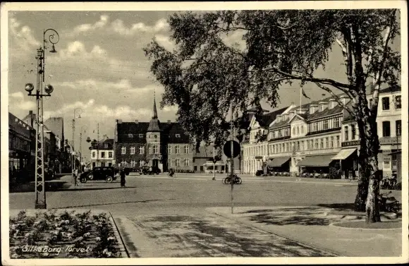 Ak Silkeborg Dänemark, Straßenpartie, Baum, Platz, Geschäfte