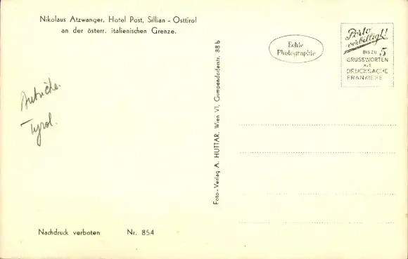 Zustand, siehe Scan, ungelaufen- Inhaber Nikolaus Atzwanger - ca 14 cm X 9 cm