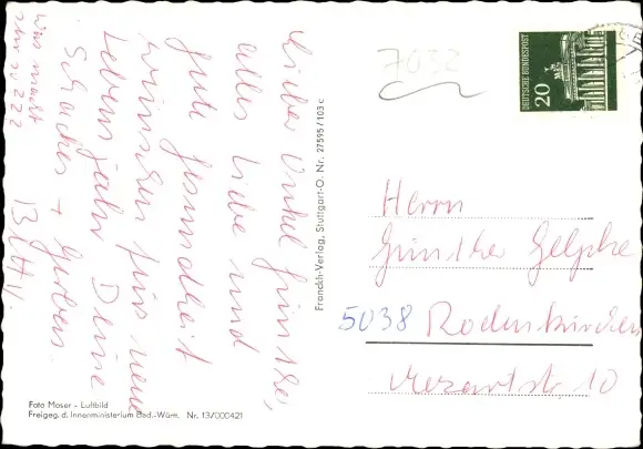 Ansichtskarte, Postkarte, Fliegeraufnahme, Luftbild, Luftaufnahme, Fliegerbild, Fliegerfoto