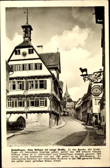 Ak Sindelfingen in Württemberg, altes Rathaus mit Lange Straße