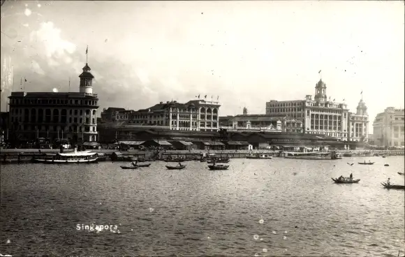 Ak Singapore Singapur, Fluss, Boote, Teilansicht