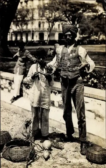 Ak Singapore Singapur, Magician, Straßenzauberer, Schlangenbeschwörer