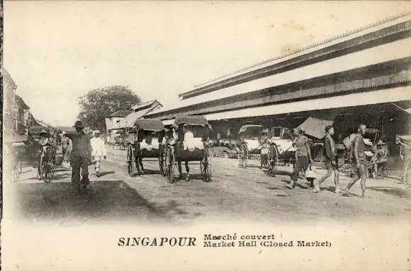 Ak Singapur, Markthalle, Rikschas