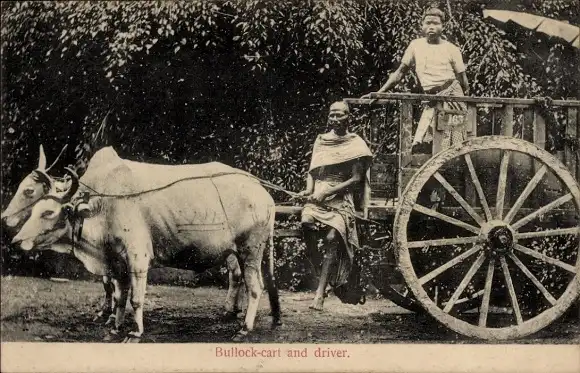 Ak Singapur, Ochsenkarren und Fahrer