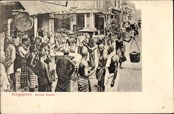 Ak Singapur Singapore, Street Scene, Straßenszene, Händler, Lastenträger
