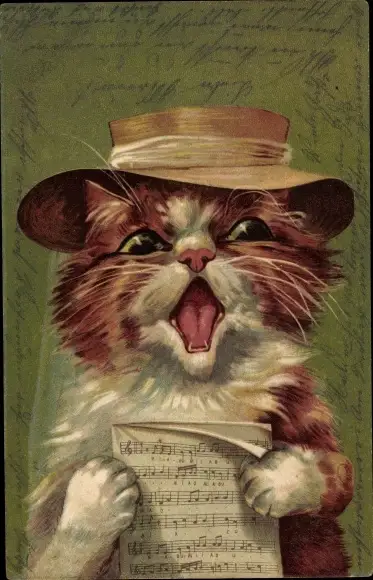 Ak Singende Katze, Vermenschlicht, Notenblatt, Hut