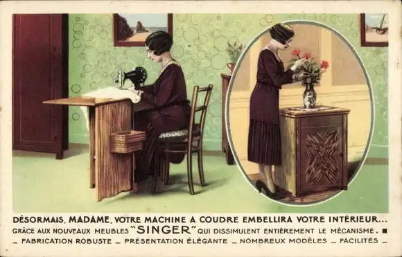 Ak Singer Nähmaschine, Reklame, Frau beim Nähen