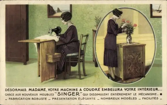 Ak Singer Nähmaschine, Reklame, Frau beim Nähen