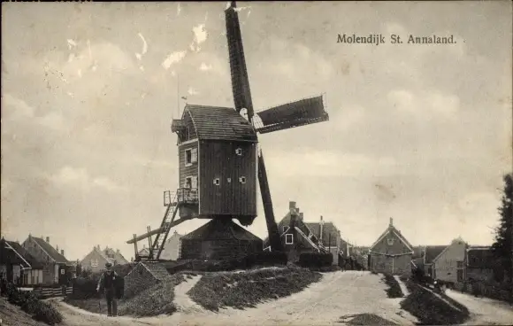 Ak Sint Annaland Zeeland Niederlande, Molendijk