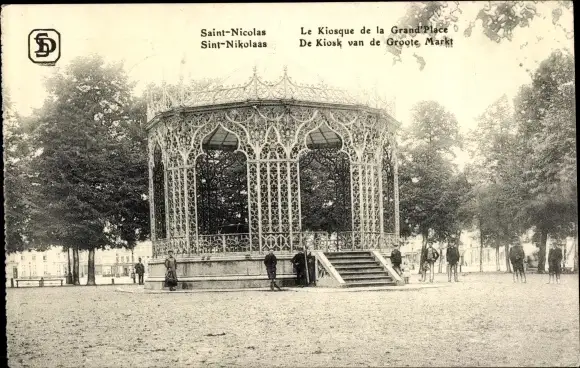 Ak Sint Nikolaas Ostflandern, De Kiosk van de Groote Markt, Soldaten