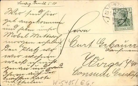 Zustand, siehe Scan, gelaufen, 1908 - ca 14 cm X 9 cm