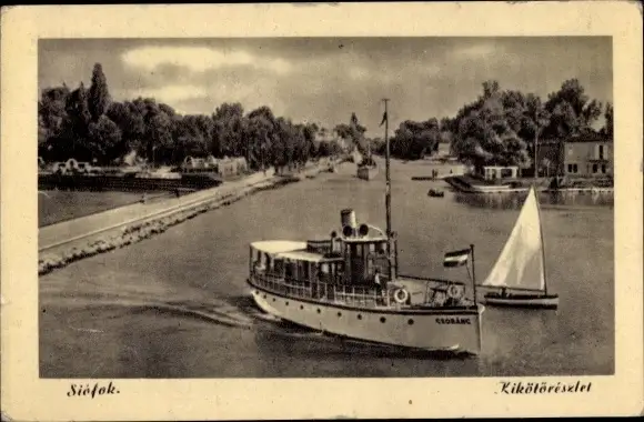 Ak Siofok Fock Ungarn, Dampfer, Segelboot, Wasserpartie