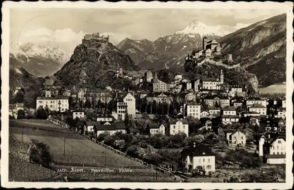 Ak Sion Sitten Kanton Wallis, Tourbillon, Valere, Gesamtansicht