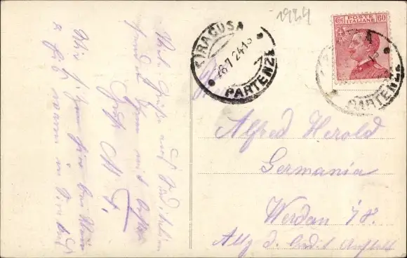 Zustand, siehe Scan, gelaufen, 1924 - ca 14 cm X 9 cm
