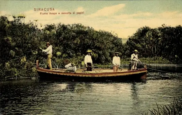 Ak Siracusa Syrakus Sizilien, Männer im Ruderboot
