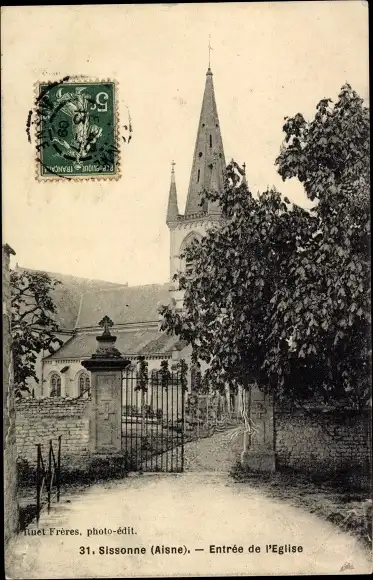 Ak Sissonne Aisne, Kircheneingang