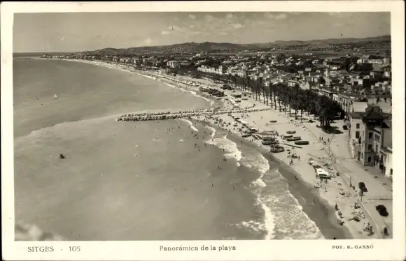 Ak Sitges Katalonien Spanien, Panorama, Strand