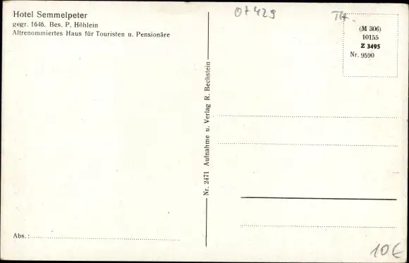 Ansichtskarte, Postkarte, Hotel, Pension, Fremdenheim, Kurpension, Pensionat