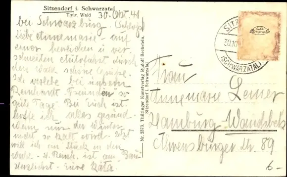 gelaufen 1941, Briefmarke entfernt, sonst guter Zustand