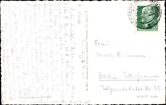 Zustand, siehe Scan, gelaufen, 1961 - ca 14 cm X 9 cm