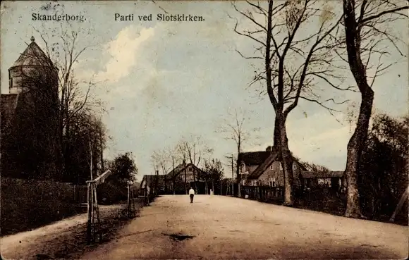 Ak Skanderborg Dänemark, Straßensicht mit Schlosskirche