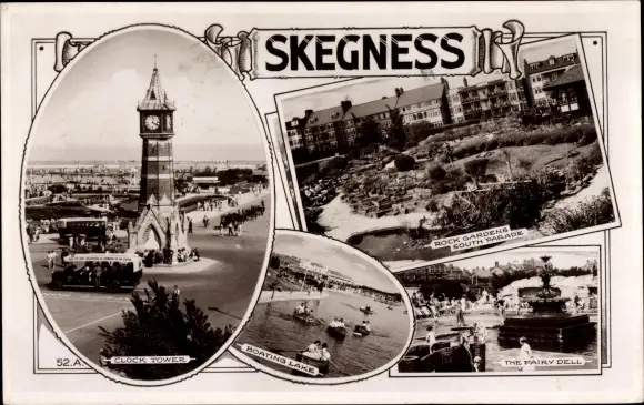 Ak Skegness East Midlands England, Clock Tower, Boating Lake, South Parade