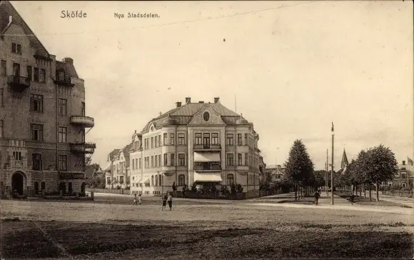 Ak Skövde Schweden, Nya Stadsdelen, Straßenpartie