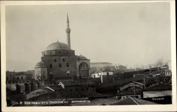 Ak Skopje Mazedonien, Teilansicht mit Moschee