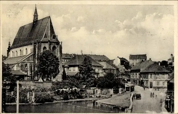 Ak Slaný Schlan Mittelböhmen, Teilansicht der Kirche