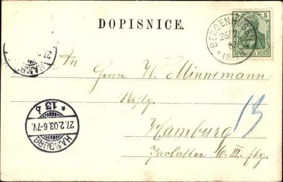 Zustand, siehe Scan, gelaufen, 1903 - ca 14 cm X 9 cm
