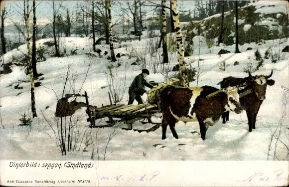 Ak Smaland, Holz-Transport, Rinder, Wald