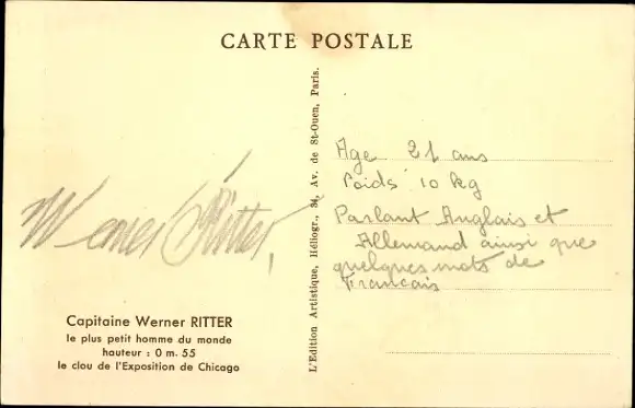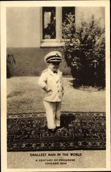 Ak Smallest man in the world, A century of progress, Chicago 1934, Capitaine Werner Ritter