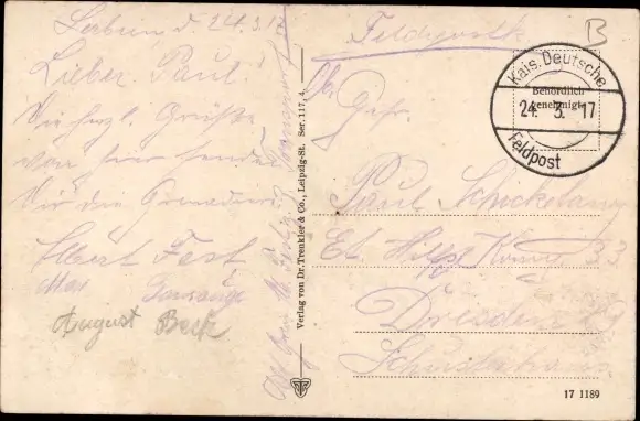 Zustand, siehe Scan, gelaufen, 1917 - ca 14 cm X 9 cm